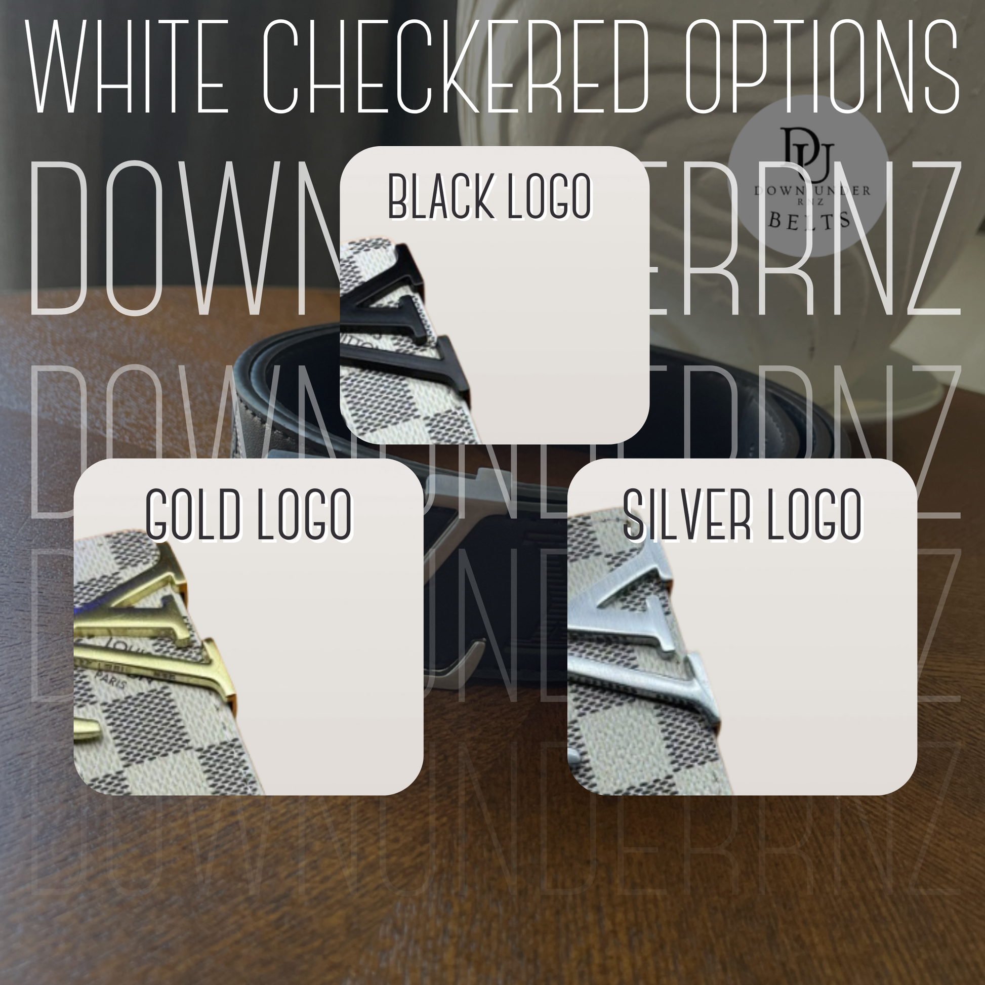 White Checkered Belts (3 Logo Options)